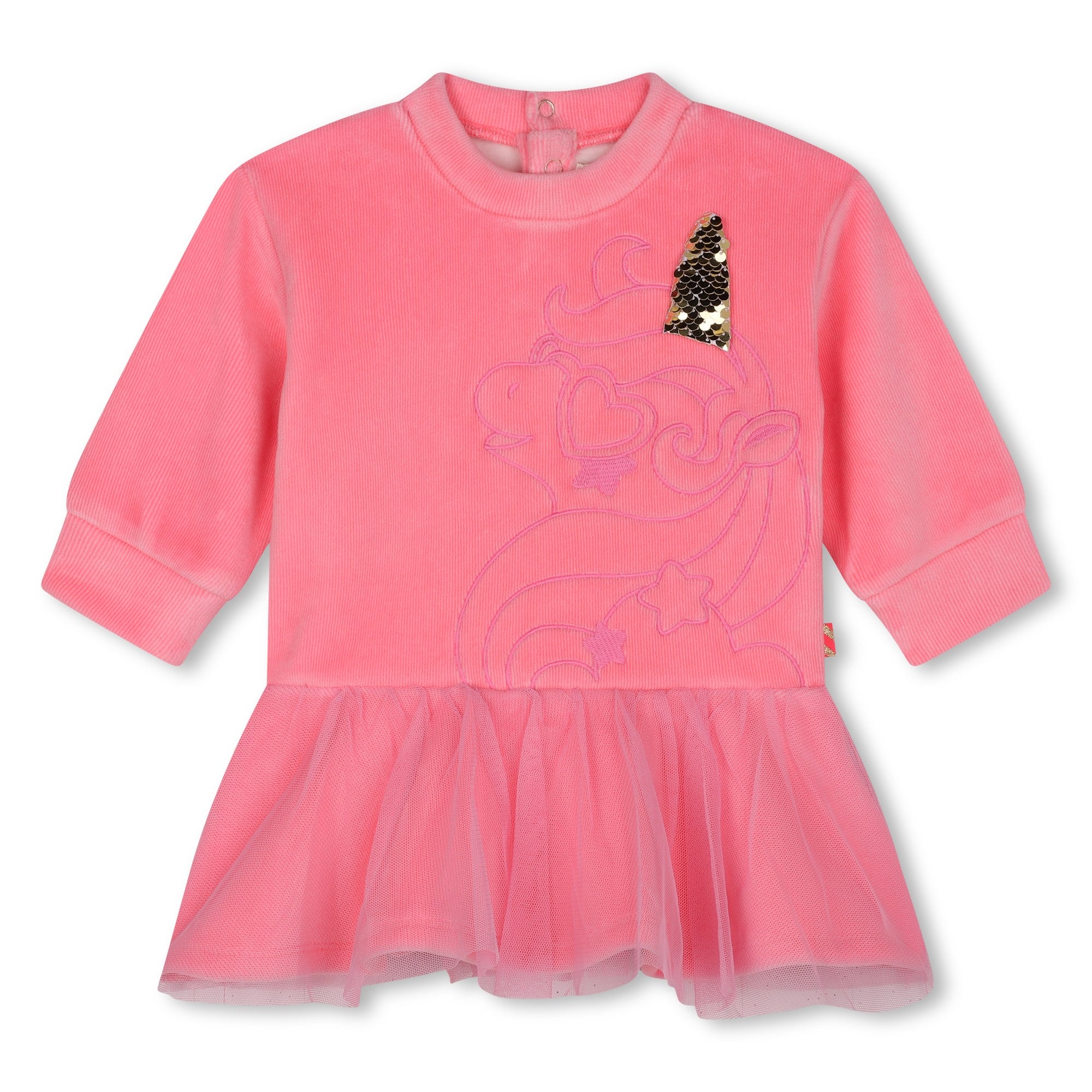 Billie Blush - Bi-Material Velvet & Mesh Dress - Pink Unicorn Graphic