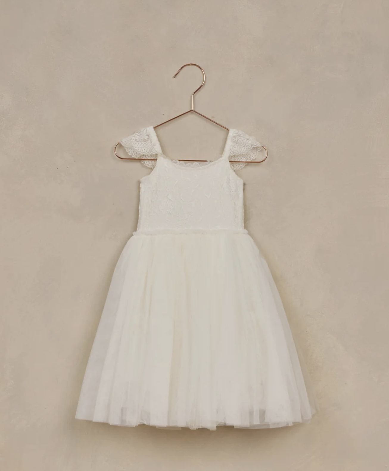 Made with your little flower girl in mind, this dress is as pretty as it is classic. The bodice features a detailed lace overlay on a soft cotton jersey liner. Finished with flutter lace sleeves and a full skirt crafted in layers of tulle. The dress is fully lined in soft cotton jersey making the dress comfortable for your little one at any event.