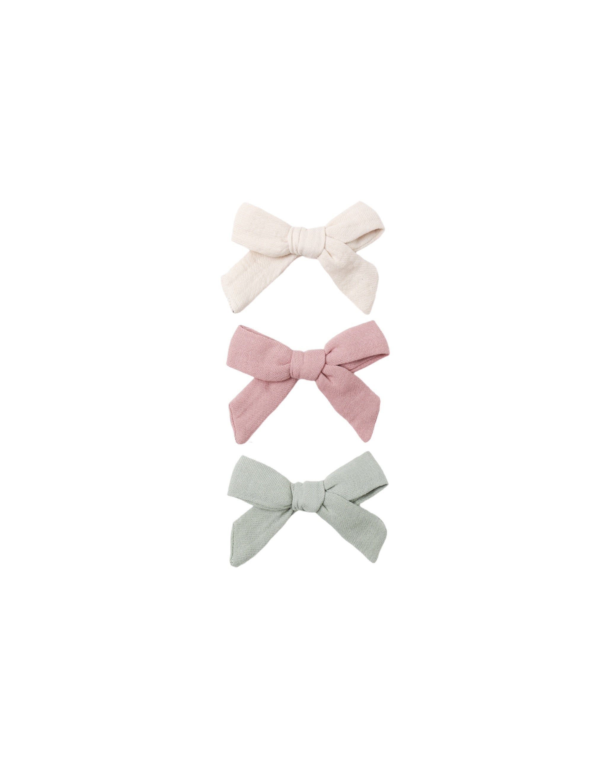 Quincy Mae - Bow W. Clip, Set Of 3 Natural, Mauve, Sage