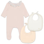 Chloe - Long Sleeve Footie and Bibs Set - Salmon