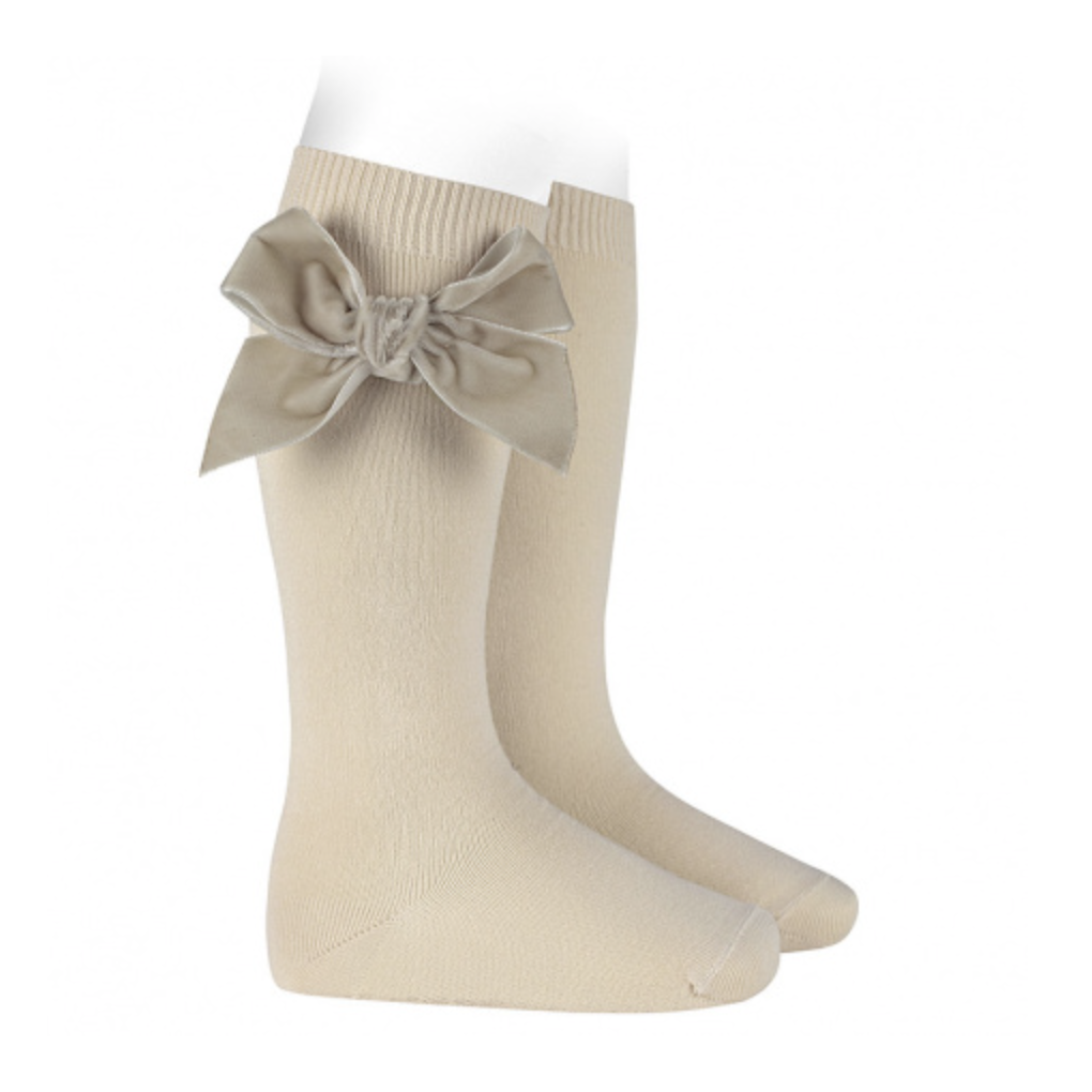 Condor - Side Velvet Bow Knee-High Socks - Linen