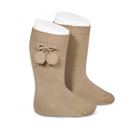 Condor - Warm Cotton Knee-High Pom Pom Socks - Camel