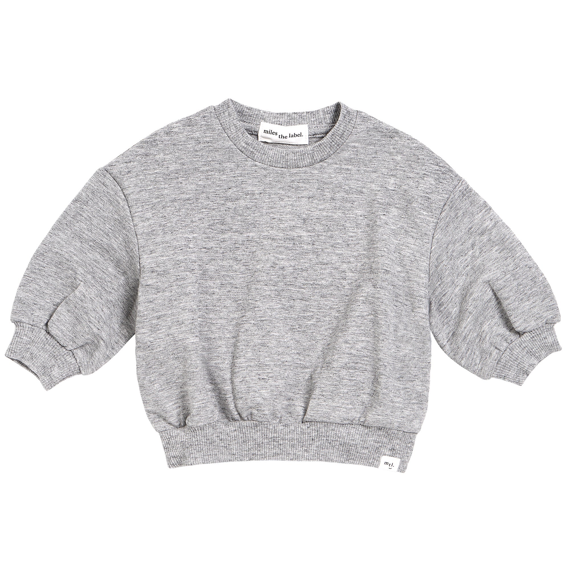 Miles - Basic Puff Sleeve Sweatshirt - Heather Grey