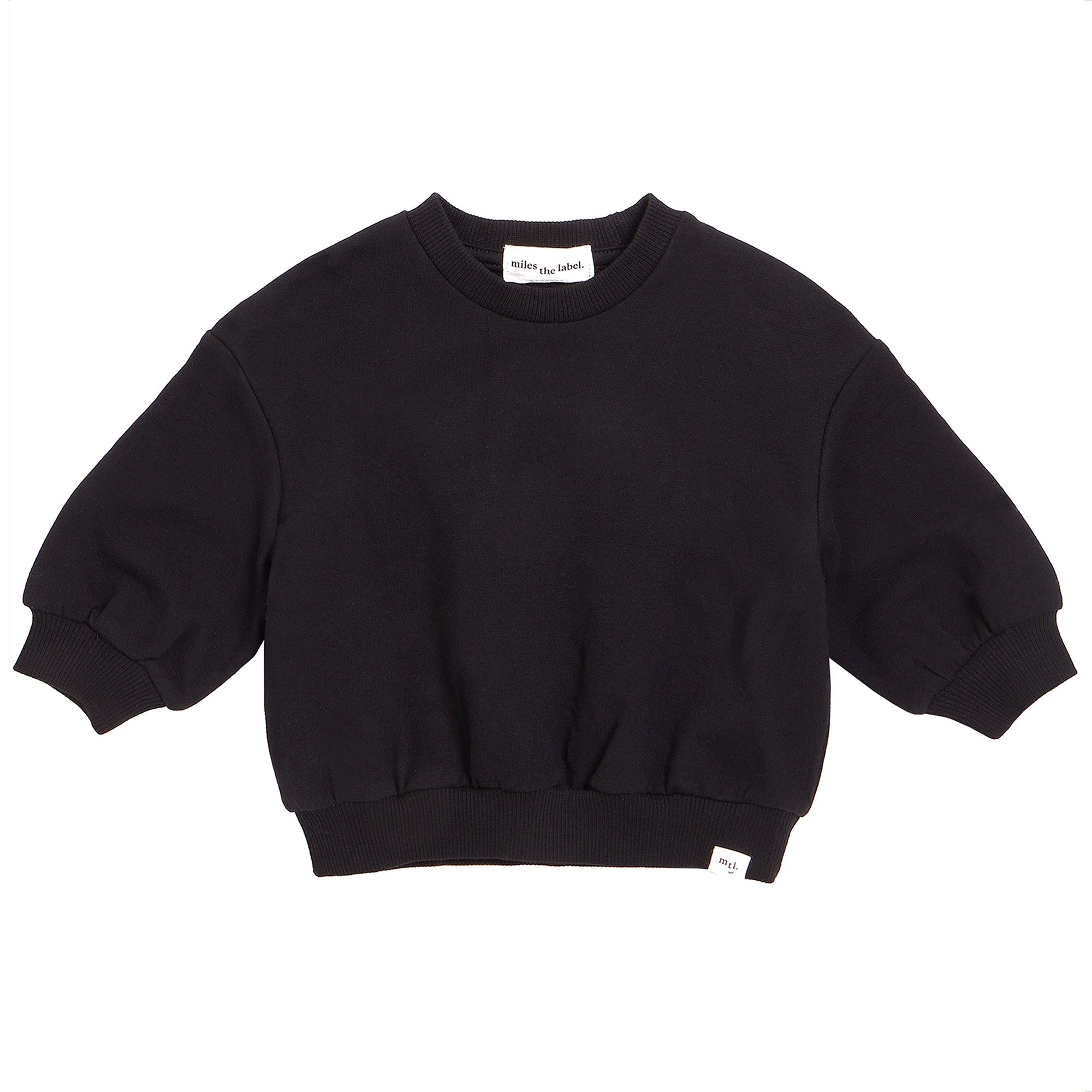 Miles - Basic Puff Sleeve Sweatshirt - Pure Black