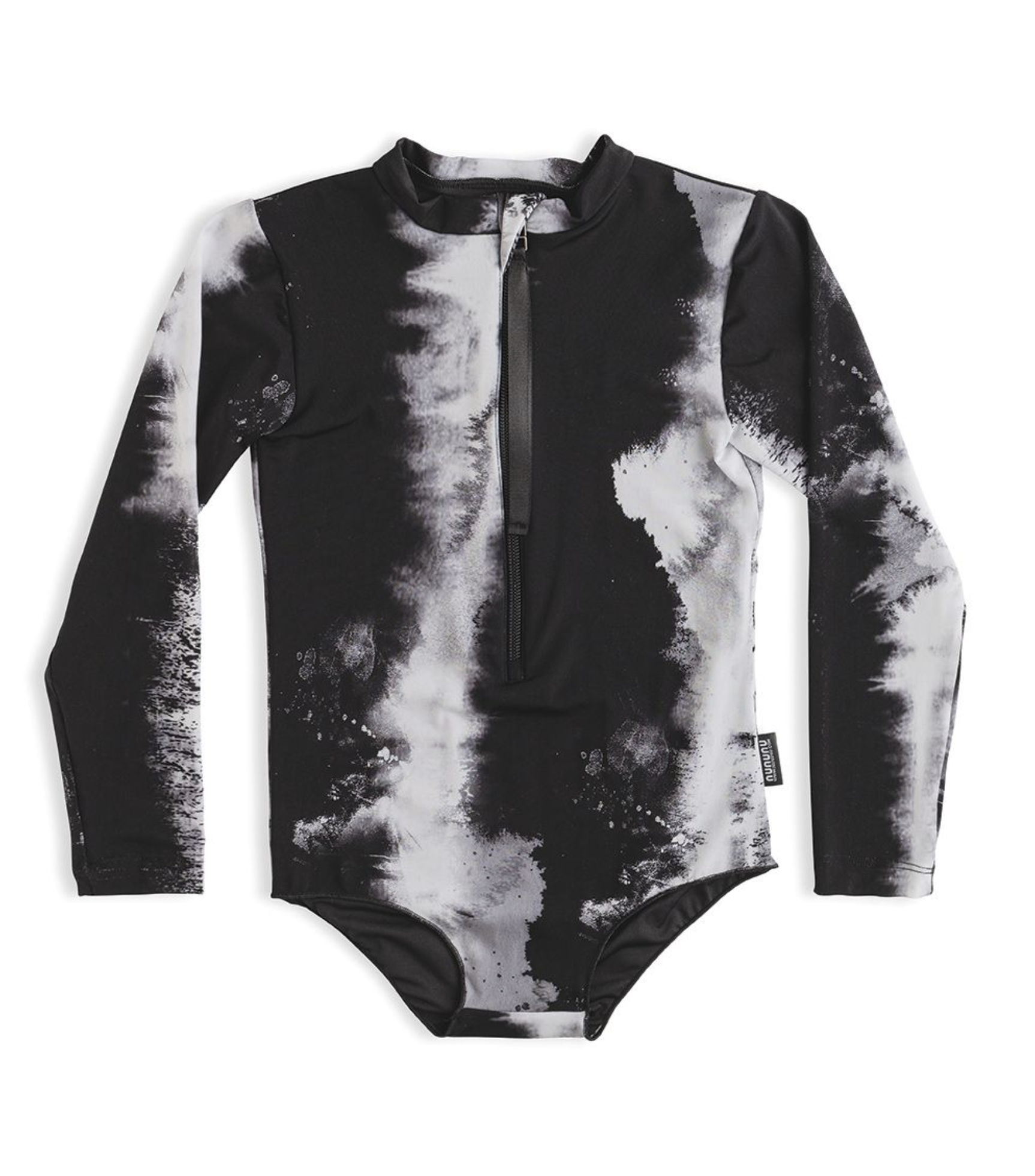 nununu - Long Sleeve Tie Dye Swimsuit - Black
