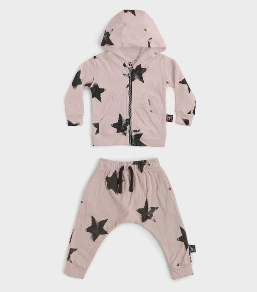 a star is born. this nude shirt & pants combo means baby stays shining all day in our star print. luxurious double-single and super soft cotton keeps the kid nice & cozy, like a constant hug, as they squirm and take in their strange new surroundings, blissfully unaware