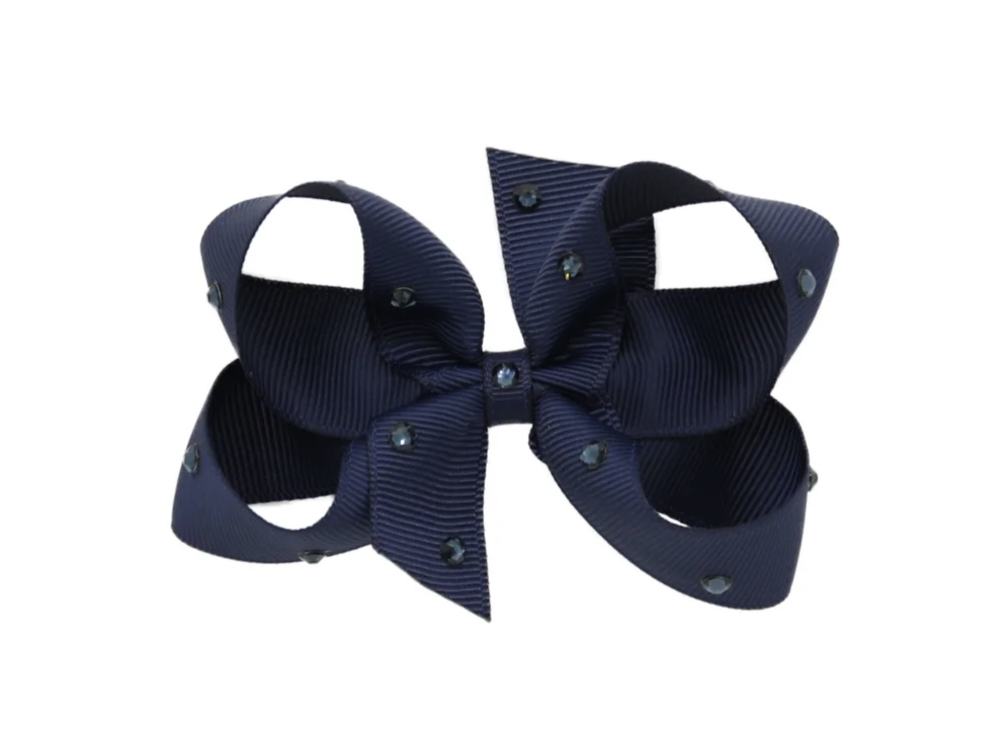 Olilia - Medium Classic Bow With Crystals - Navy Blue