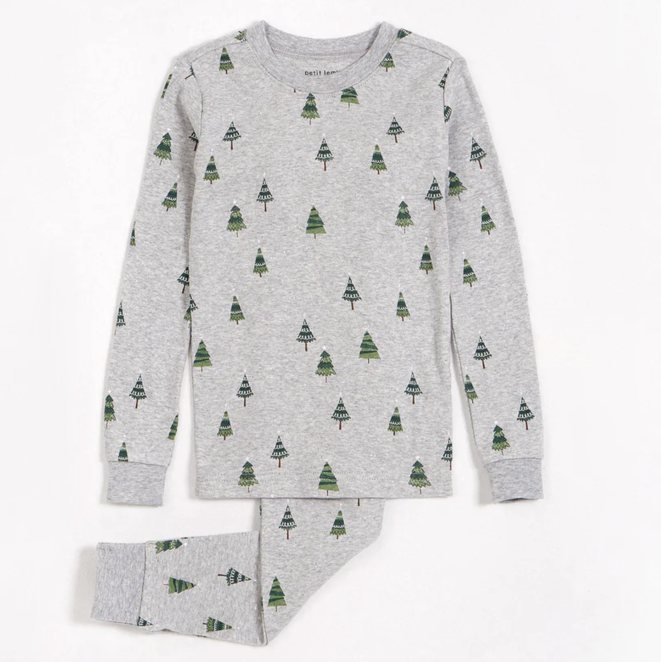 Petit Lem - O Christmas Tree Print Pajama Set - Heather Grey