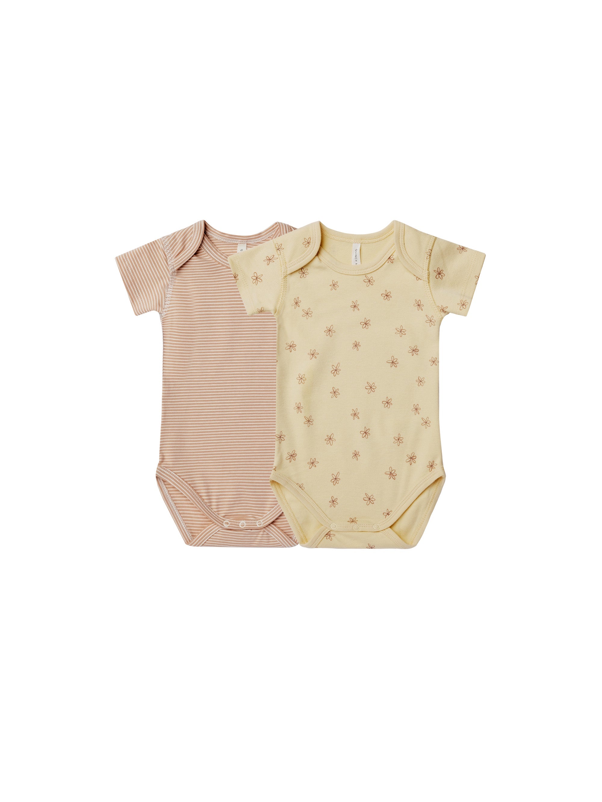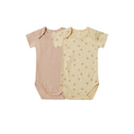 Quincy Mae - Short Sleeve Bodysuit - 2 Pack - Blossom/Apricot Stripe