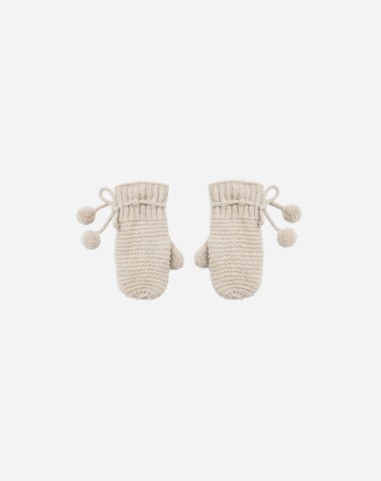 The softest mittens with pom pom details and a brushed fleece lining to keep your little one cute and cozy. Size 0-12m has no thumbholes. Sizes 12-24m and 3-5y have thumbs for better movement.
