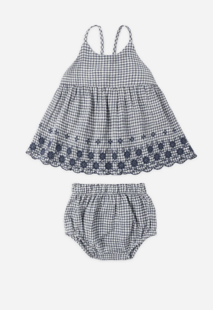 Featuring our ‘marine gingham’ print with beautiful eyelet embroidered detail. This summery blue gingham is perfect for your warm weather wardrobe.