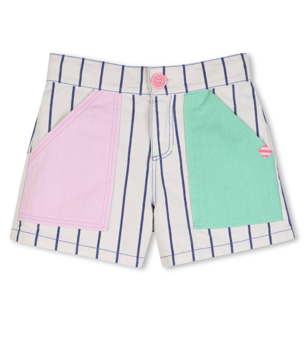 Cheerful and practical, these striped cotton shorts by BILLIEBLUSH bring a touch of pep to all children's adventures. Three contrasting pockets offer character and functionality, while the adjustable waistband and fly closure ensure a comfortable fit for stress-free gaming. We love its mischievous spirit that combines style and freedom of movement.