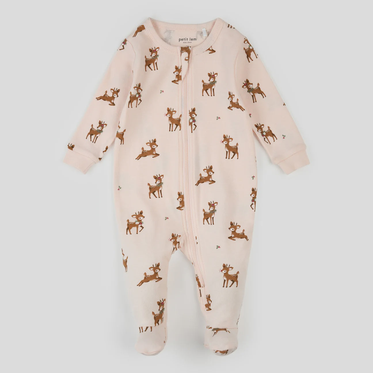 Petit Lem - Reindeer Print Sleeper - Light Pink