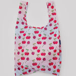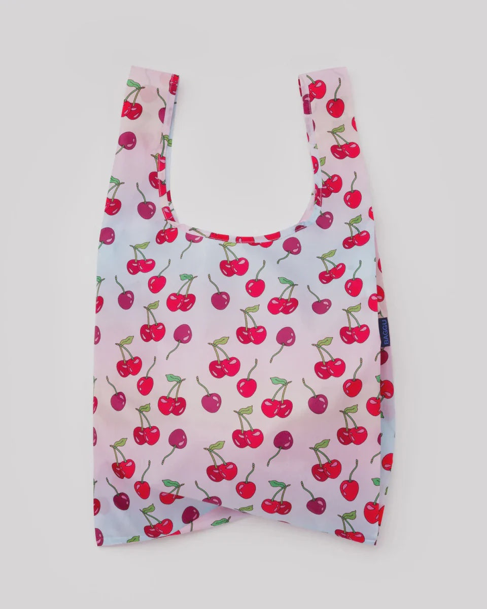 Starting with our Spring 2022 collection, all of our ripstop nylon styles are now made with 100% recycled nylon filament yarn (up from 40% recycled before). This 100% recycled nylon yarn is produced from pre-consumer waste, which saves scrap material from being landfilled — meaning every Standard Baggu is now made entirely from nylon that would otherwise go to a landfill. This also conserves petroleum resources, and reduces greenhouse gas emissions.