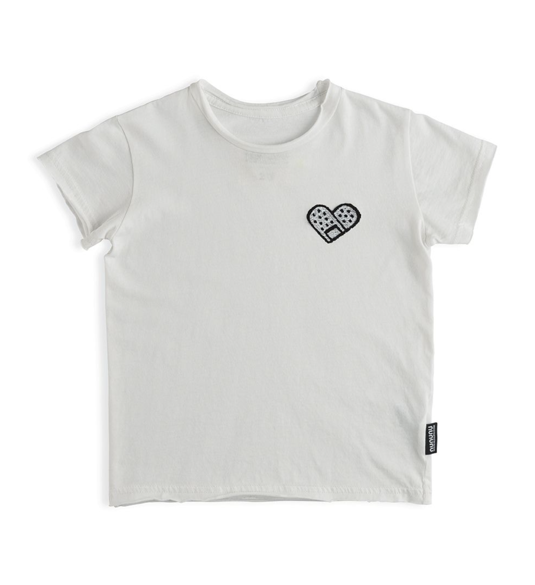 sometimes, you just need a little bandaid for your heart. this subtly cool white t-shirt shows the kid’s sensitive side with the ubiquitous bandaid design by dede, an urban-style artist whose graffiti appears all over the world, sometimes in the unlikeliest places. here, it’s in the shape of a heart, on a patch at the chest. so understated & cool.