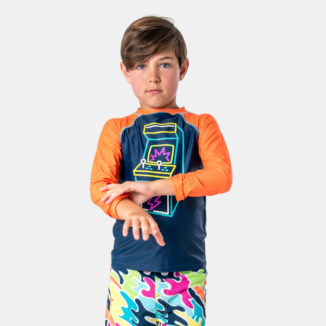 The perfect rash guard to get your kiddo outside and protect your little ones from harmful rays! Pair with our Gametime swim trunks for a matching set!