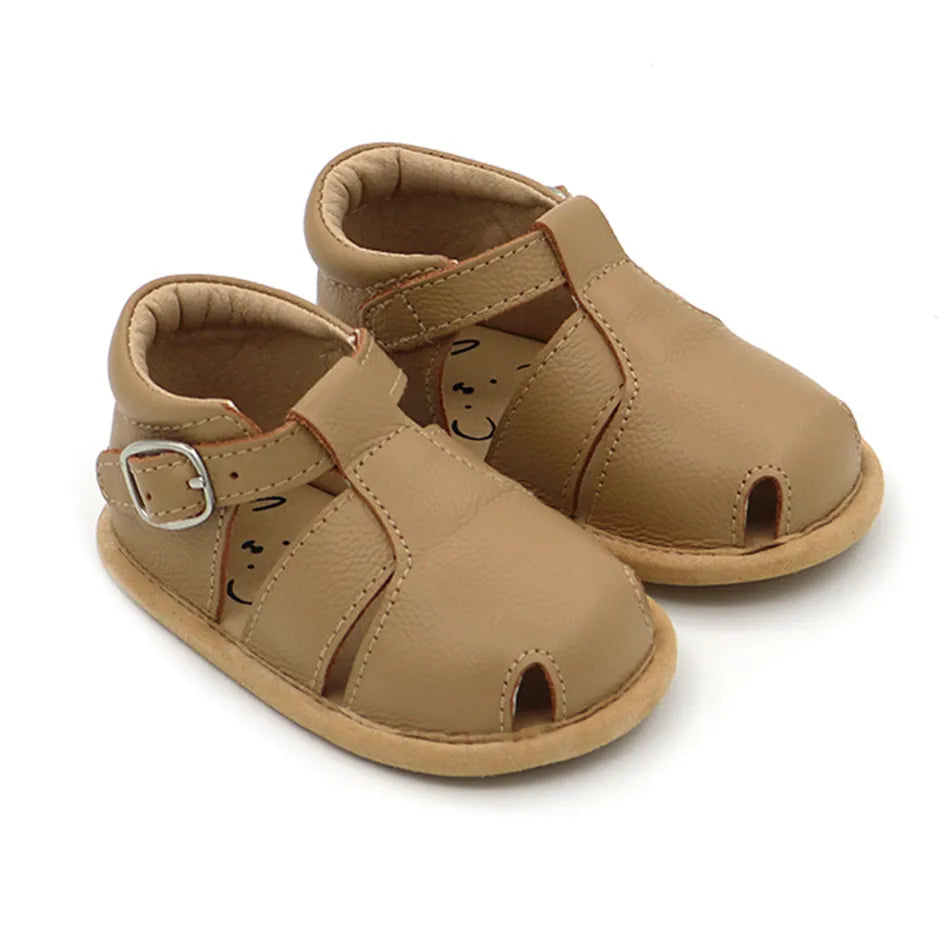 The Jude shoe is a strappy summer classic that transitions beautifully to a spring or fall shoe when matched with a bright pair of socks. It features a real adjustable buckle to keep them snug and in place.