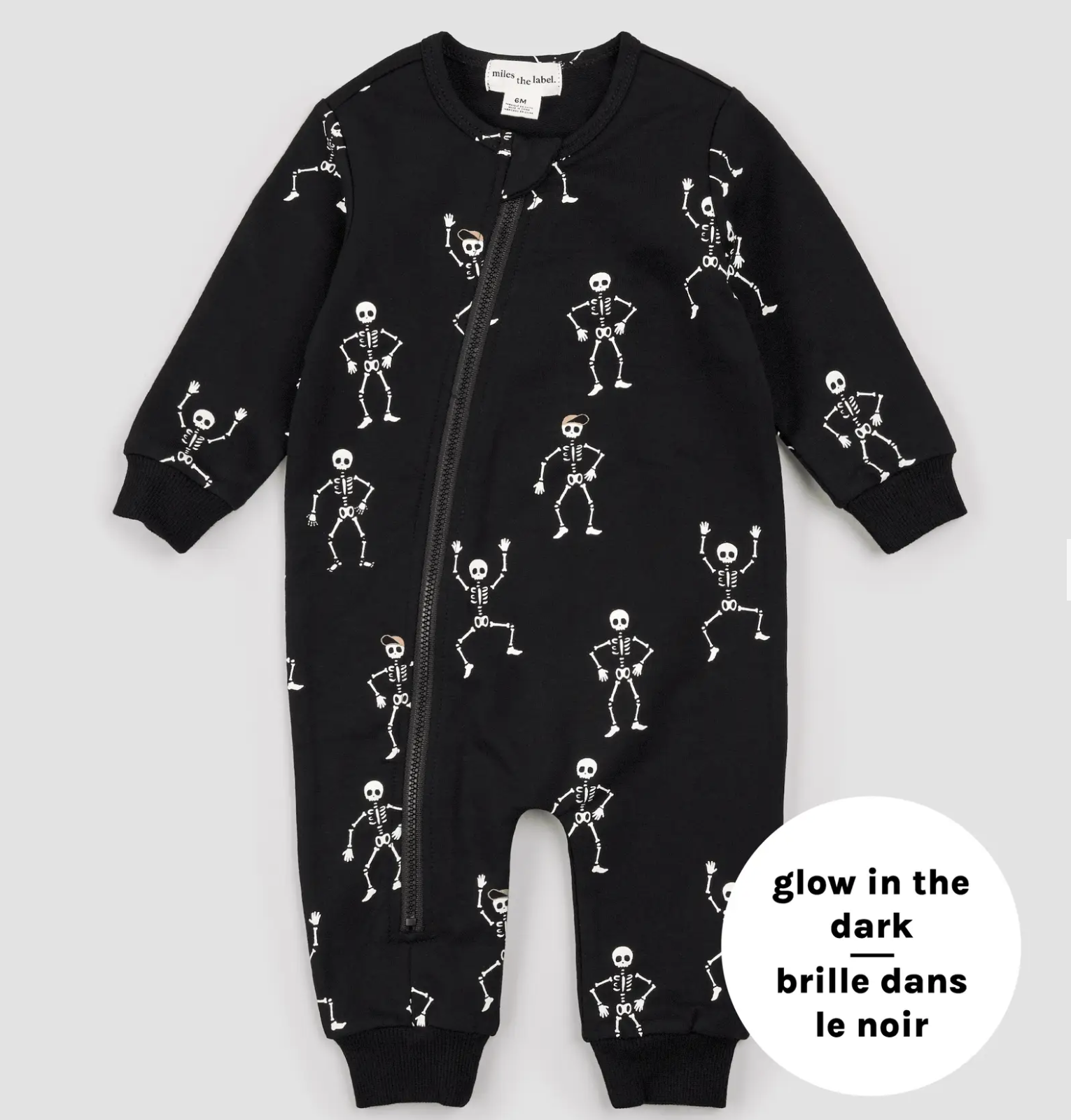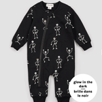 Wrigglers, crawlers and cruisers rejoice! Finally, little ones can enjoy the comfort of their favorite one-piece while still getting involved with the Halloween fun. This comfy playsuit features a glow in the dark Dancing Skulls print which will totally capture their attention when heading to bed. Made from organically grown cotton French terry and finished with ribbed cuffs and ankles, it’s light and flexible while still keeping them warm. The full-length zip makes dressing and changing quick and easy, so they can get back to their spooky game of peekaboo or playing tricks on the rest of the fam.