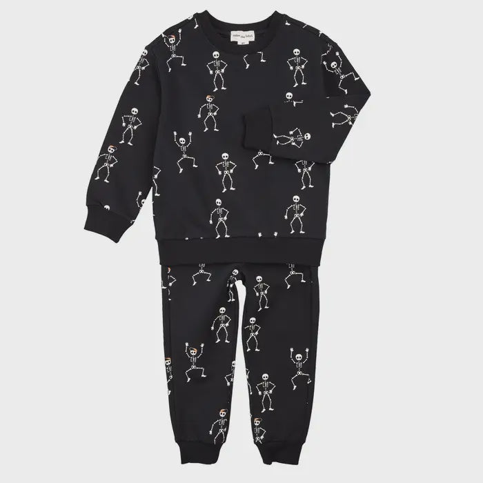 Miles the Label - Dancing Glow-in-the-Dark Skeletons Jogger Set - Black