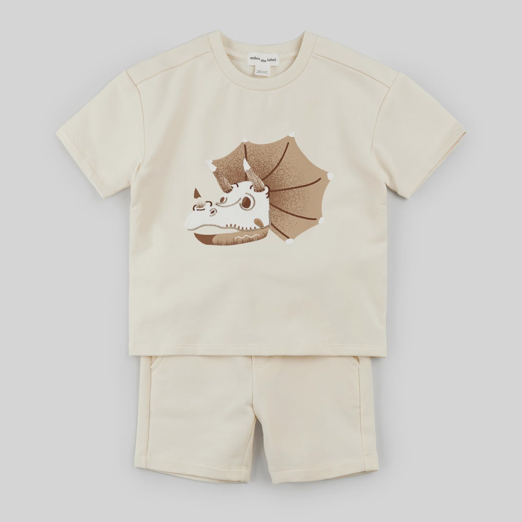 Miles the Label - Embroidered Triceratops Fossil Shorts Set - Birch