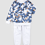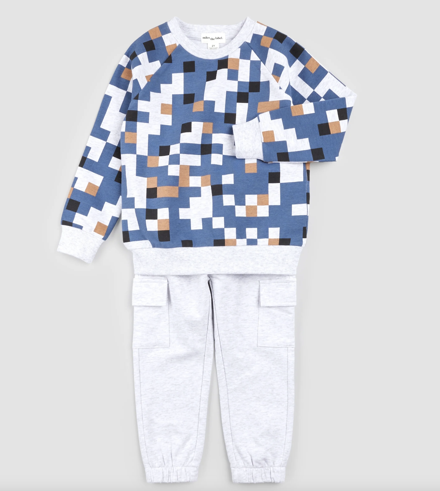Miles the Label - Pixelated Cargo Jogger Set - Blue Check