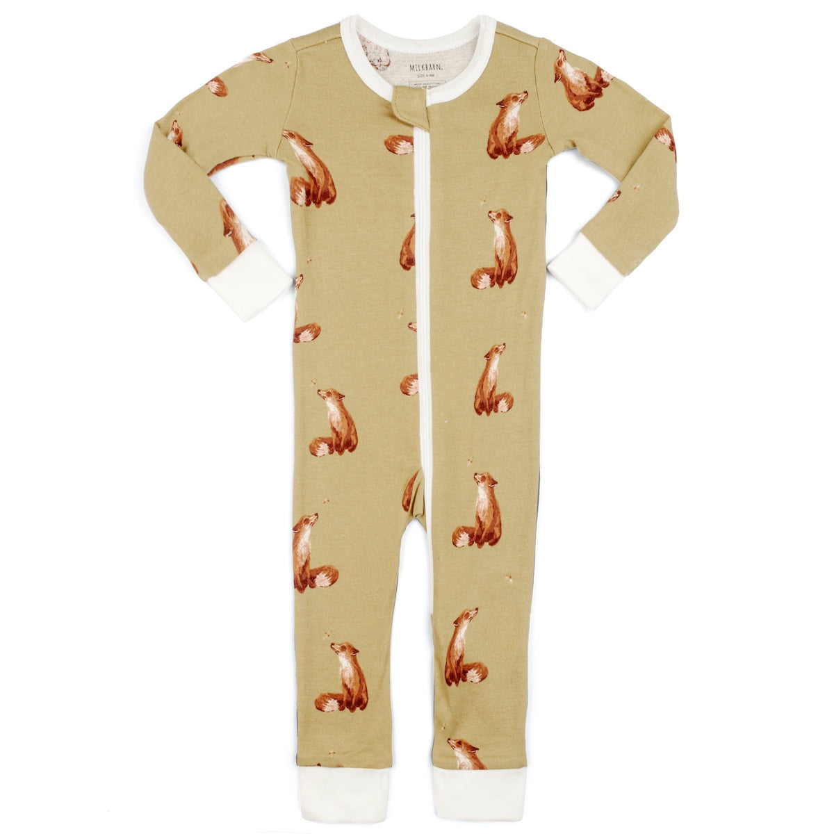 Milkbarn - Organic Cotton Zipper Pajama - Gold Fox