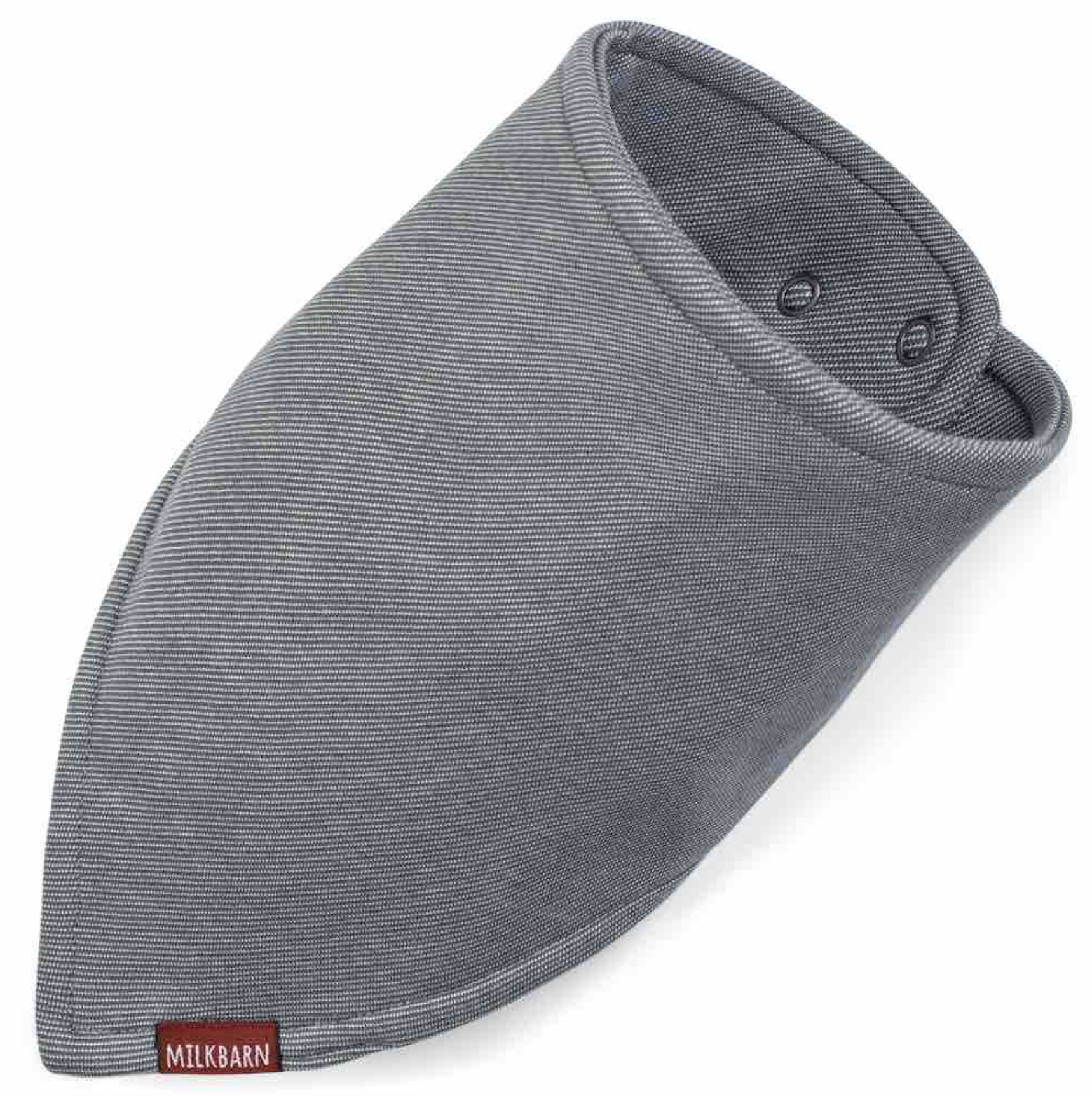 Denim (medium weight): Created of 81% organic cotton and 19% recycled polyester, the medium-weight, breathable fibre of our Kerchief Bib protects sensitive skin and helps preserve and protect our environment.