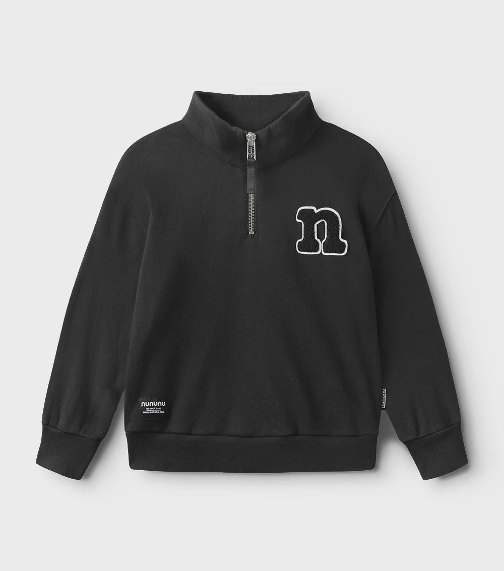 Nununu - 1/2 Zip Letter Sweatshirt - Black
