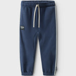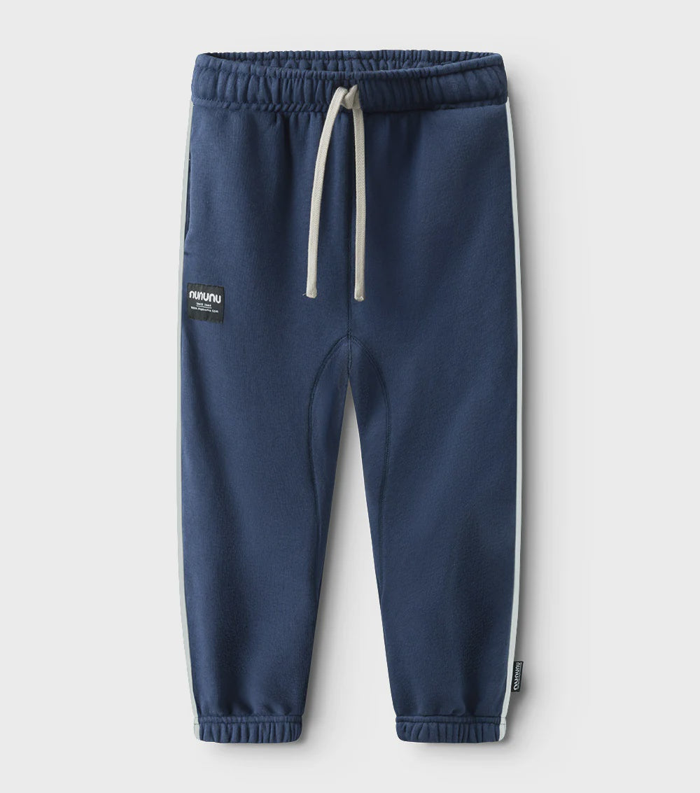 for the kid who can’t stop moving, we’ve got a rad pair of gender neutral sweatpants that are ready for any activity. they’re made of indigo french terry that's practically as soft as bunnies with a black stripe down the side of the leg to let the world know the kid wearing them is ready to hop to it. plus, they’ve got a nuanced inner hemline near the crotch for that rounded look and side pockets for stashing snacks. a drawstring & elastic ankle cuffs keep the look ready to race. cuff them or don't. they look incredible no matter what.