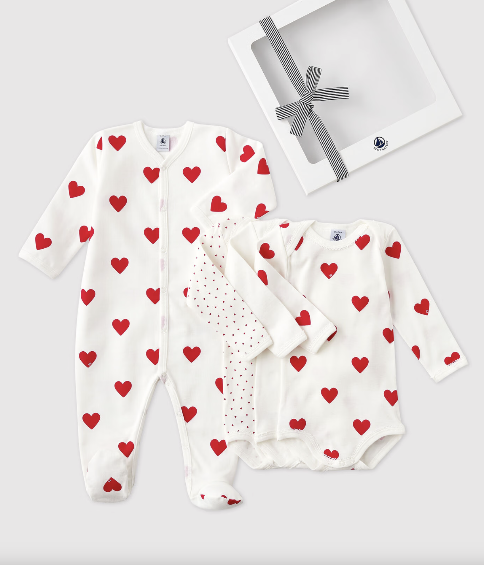 • 3 bodysuits in Petit Bateau's iconic rib knit. Super practical because of the envelope necks and the poppers between the legs.