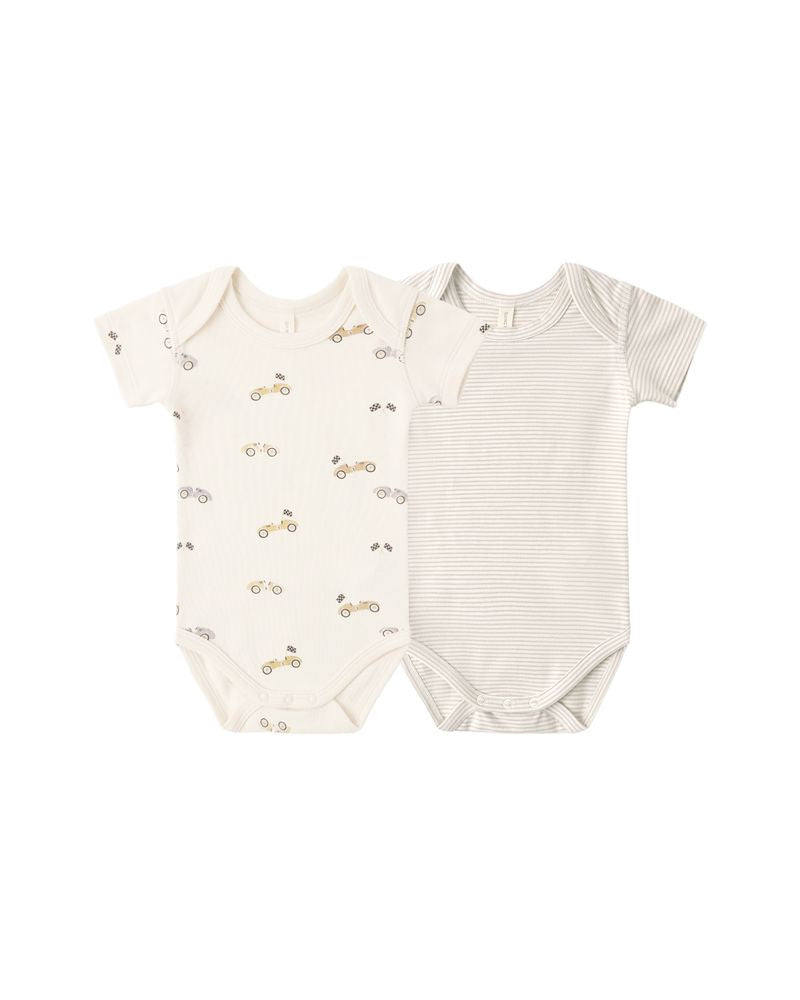 Quincy Mae - Short Sleeve Bodysuit Pack - Race Car & Micro Oat Stripe