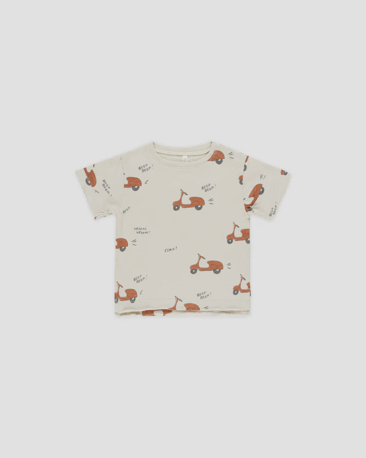 Featuring our ‘moped’ print on our ‘stone’ hue. Zip away to summer adventures in this fun look.