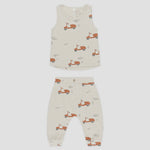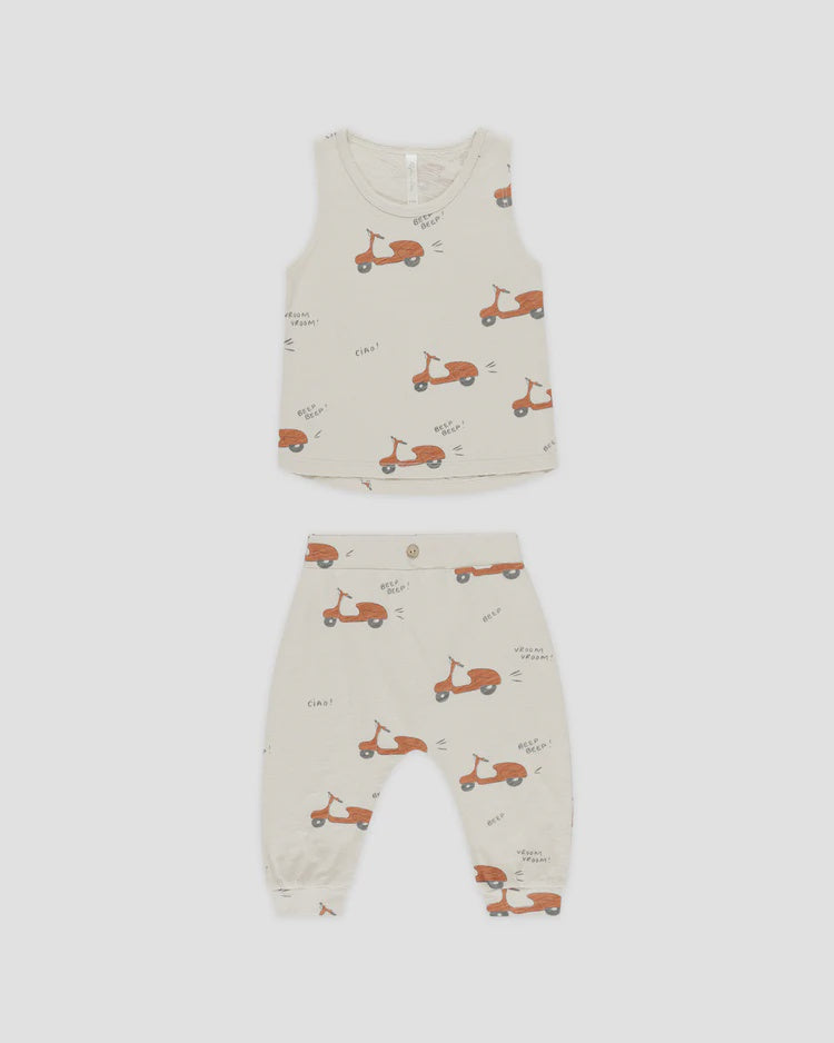Featuring our ‘moped’ print on our ‘stone’ hue. Zip away to summer adventures in this fun look.