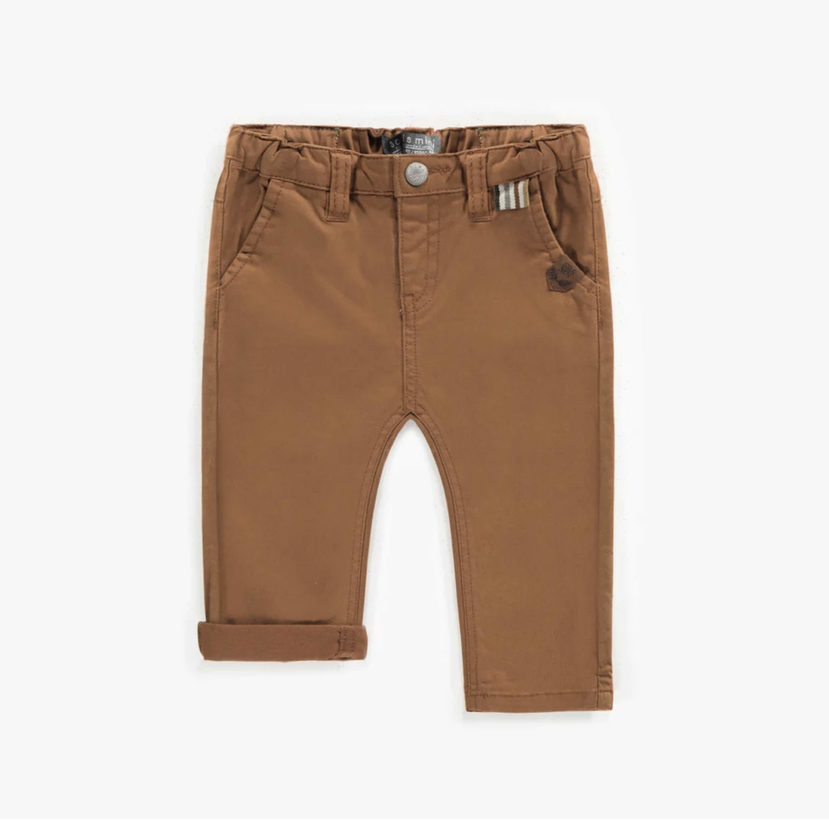 Brown pants made of linen and cotton twill with pockets on each side and elastic waist. As chic as every day. Can be folded to make ¾ pant. Perfectly matches all the tops of the Songbirds collection.