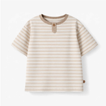White and beige striped T-shirt for a simple, stylish look. Features a round neckline with a button and short sleeves. Made of soft cotton jersey in a relaxed fit.
