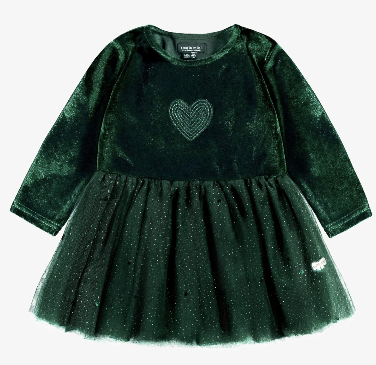 Souris Mini - Green dress in velvet and sequin, baby