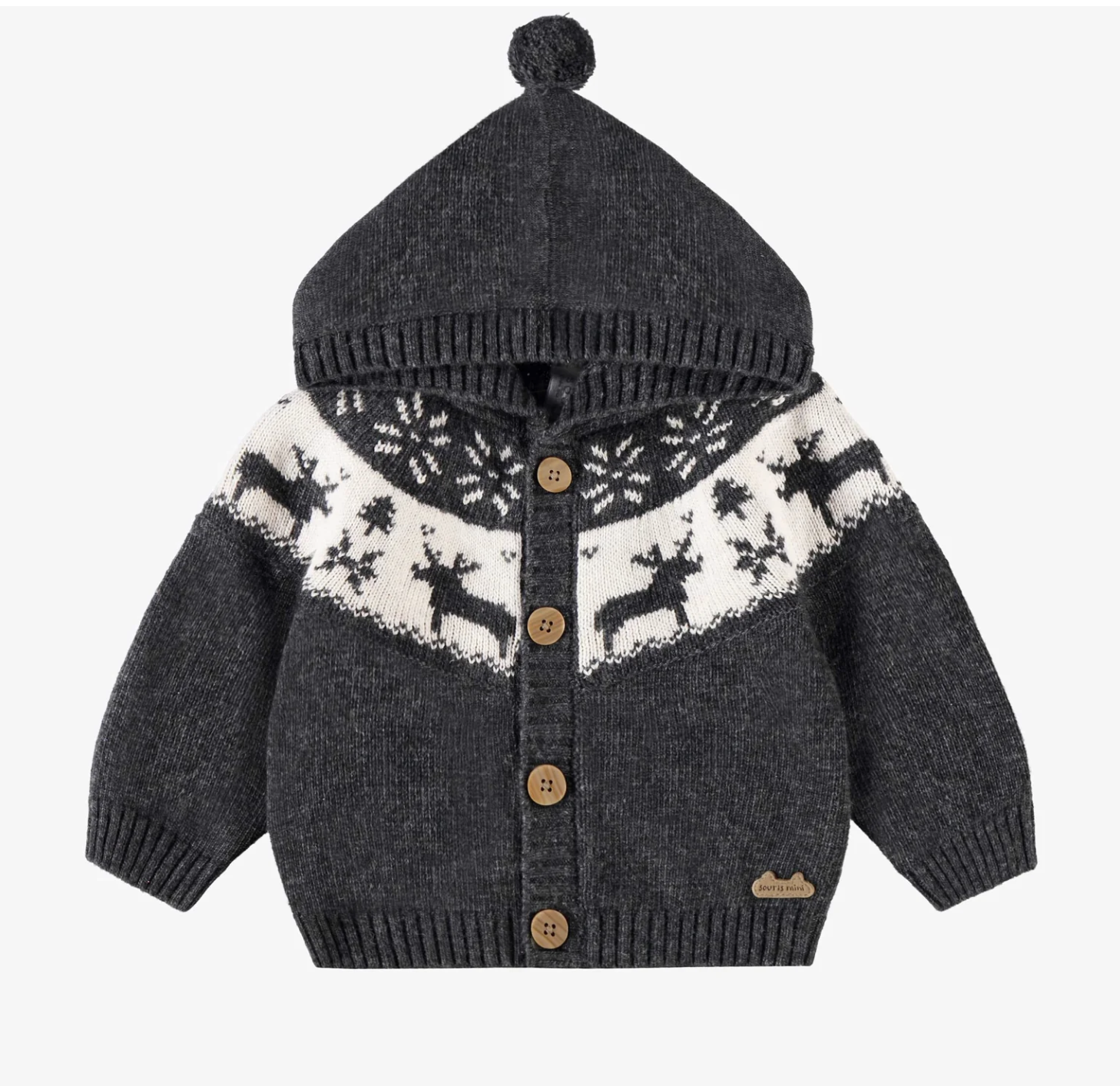 Souris Mini - Grey knit cardigan with jacquard patterns