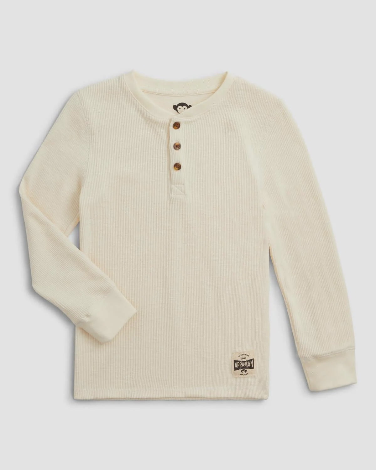The Craftsman Thermal Henley in Winter White is the perfect mix of cozy warmth and cool style for your little adventurer. Crafted from high-quality thermal fabric, it keeps them warm without feeling bulky—ideal for layering on crisp days. The classic Henley design with stylish button details adds a touch of fun to any outfit, making it easy to pair with jeans or shorts. Whether they're heading to school or out exploring, this versatile top is perfect for any occasion. Parents will love the durability, while kids will enjoy the comfort and the effortless cool factor. A must-have for every wardrobe!