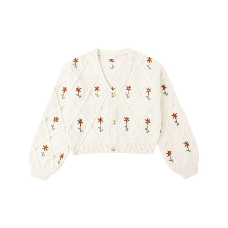 Rylee & Cru - Boxy Crop Cardigan - Winter Daisy Embroidery