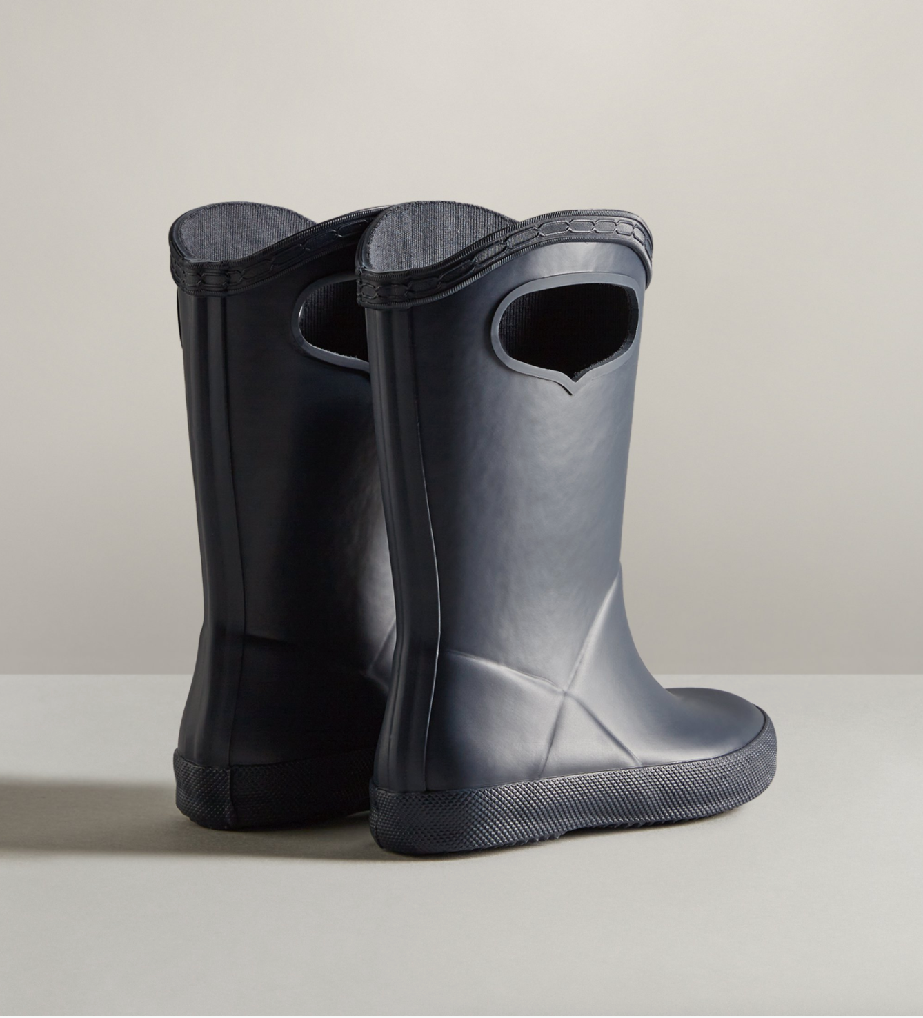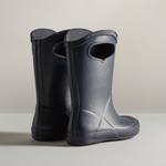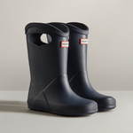 Featuring an easy pull on style with cute carry handles perfectly sized for little fingers, the new Kids First Grab Handle Rain Boot gives your little explorers complete independence. Finished in a wipe clean navy matte, this waterproof boot is perfect for puddle splashing. A flat sole and rounded toe gives little feet room to move and the soft cotton lining ensures complete comfort for every adventure.