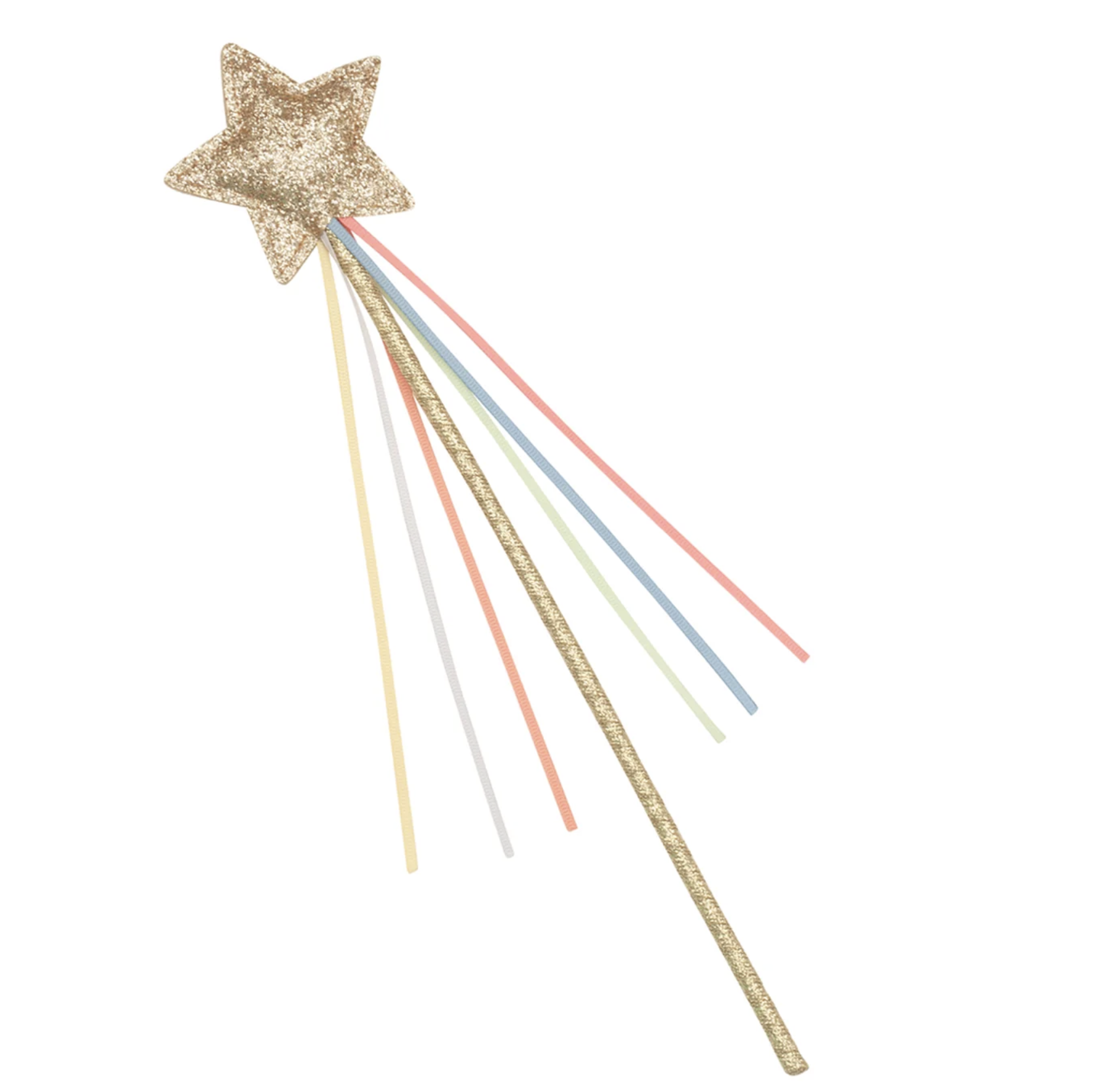 The Rockahula Rainbow Glitter Star Wand brings a burst of sparkle to every adventure. With its rainbow-shimmering star, fabric-wrapped stem, and bright grosgrain streamers, it’s perfect for magical play, dress-up days, and kids who love to shine.