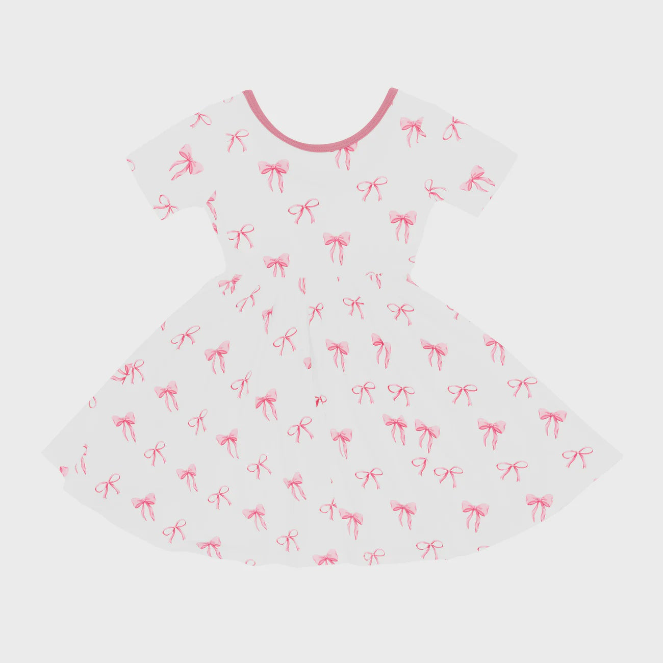 Cut from soft, stretchy bamboo fabric, this twirl dress features a full skirt so your toddler can spin in style. The classic design of the dress can easily be dressed up or down, making it the perfect everyday outfit.