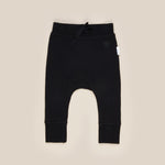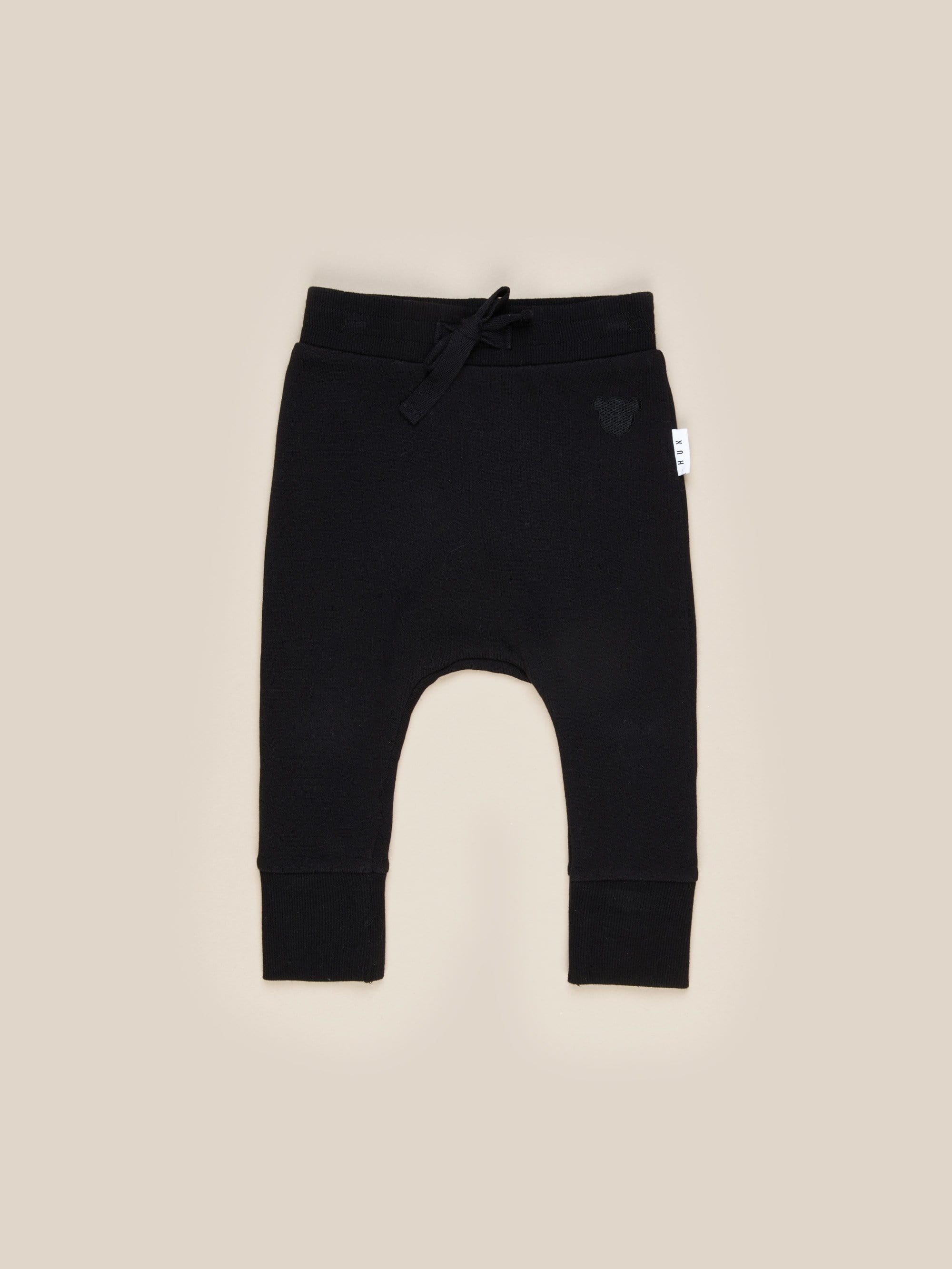 You can never go wrong with drop crotch, black, organic cotton fleece pants! Less is more with these super-soft pants with Huxbear embroidery.