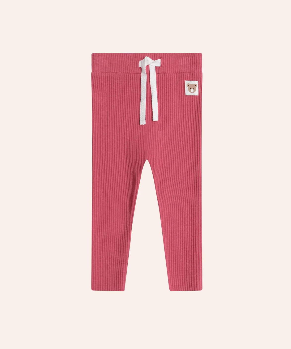 A versatile layering legging in cherry red. These comfy pants are made from extra thick ribbed cotton to keep little bodies warm. They feature a soft yet stretchy waistband for ultimate tummy comfort and a drawstring closure for an adjustable fit. A true wardrobe essential.