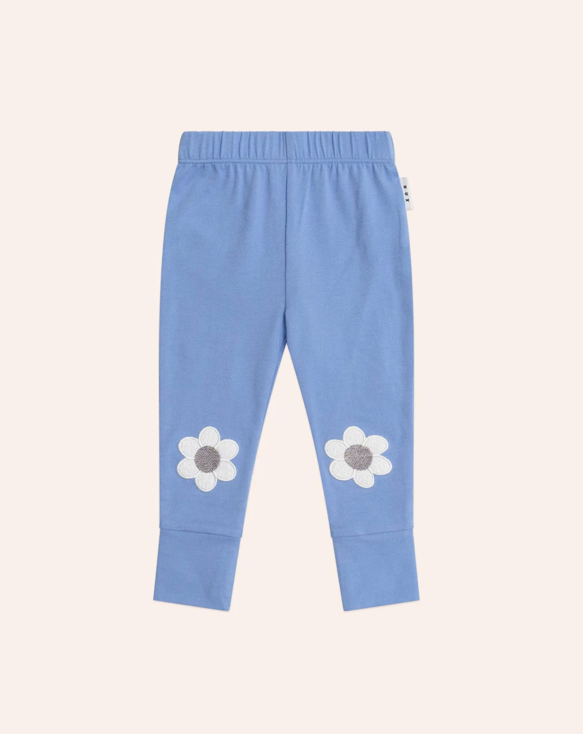 Cartwheel-worthy leggings. Made from soft organic cotton jersey, they feature cute terry daisy knee patches. The soft stretchy waistband stays up (even mid-wheel) and keeps little tummies comfy all day long. Ideal for everyday wear.