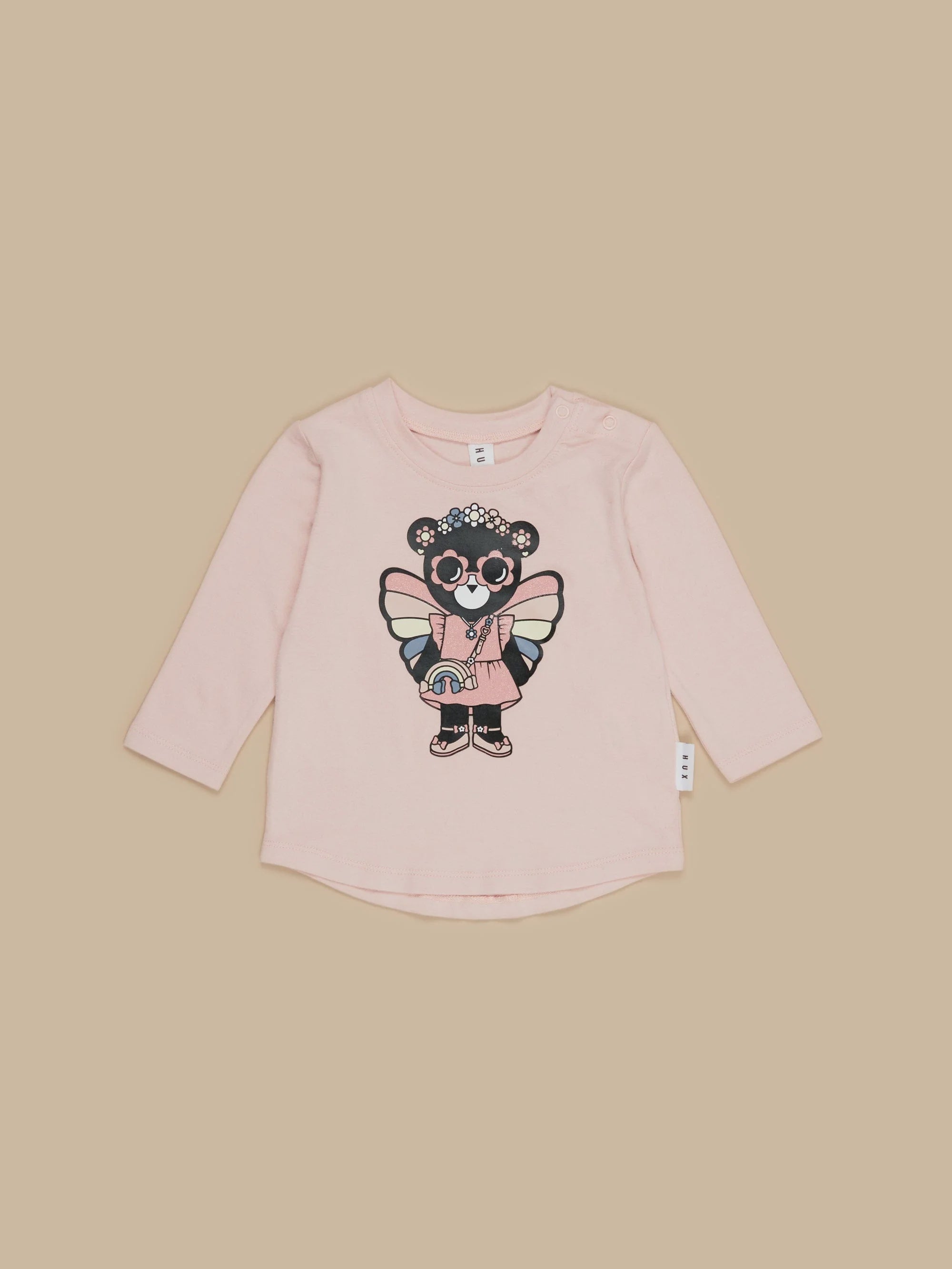 Our Fairy Bear Top is a great layer for all seasons! This long-sleeve top is complete with a fairy bear print. Made from a premium GOTS certified organic cotton.