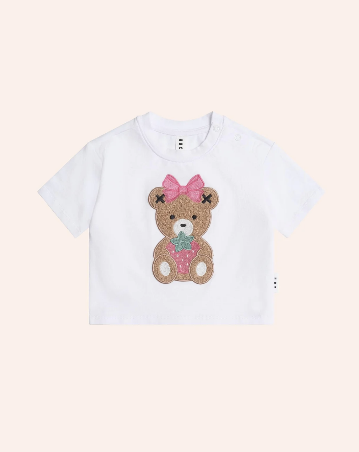 The perfect everyday tee, but with a sweet strawberry twist. This boxy t-shirt is made from buttery-soft organic cotton in a crisp white hue and features a strawberry Huxette embroidered on the tummy. Baby sizes feature stainless steel shoulder snaps for quick changes.