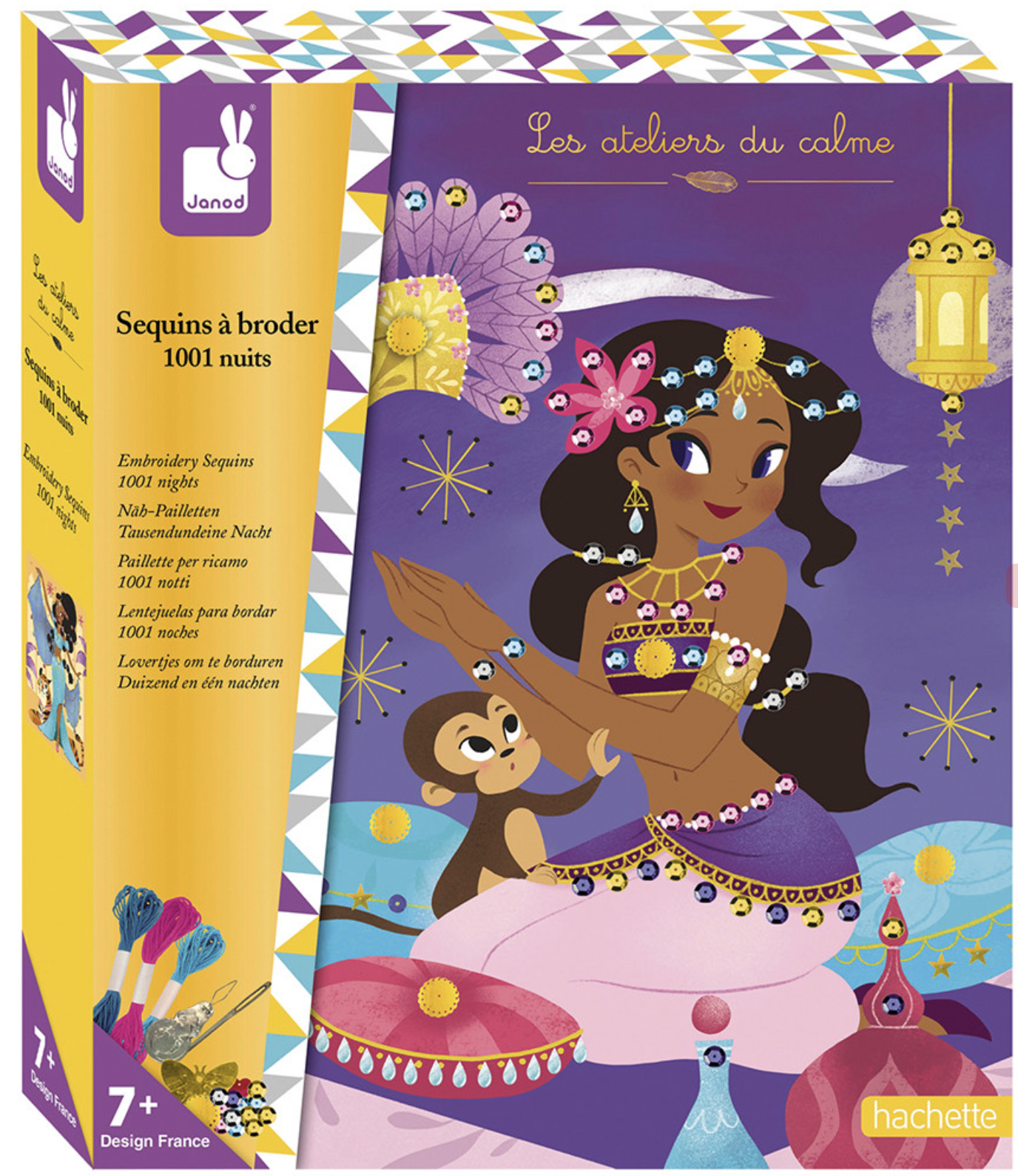 Contains : 5 boards to decorate with more than 150 sequins (5 shapes and 5 colours), 3 coloured cotton threads, 1 plastic needle and 1 threader. Creative activities providing calm, concentration and relaxation.