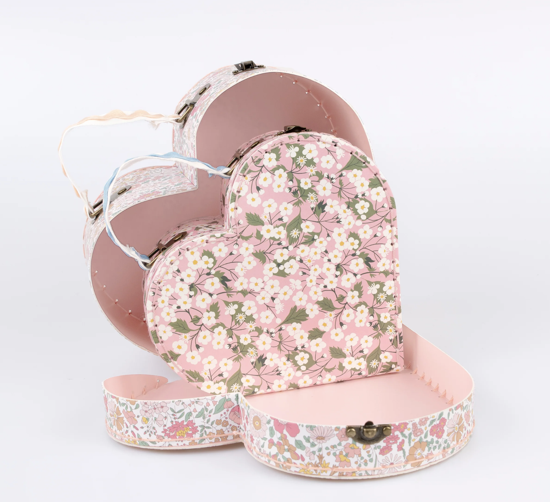 This sophisticated suitcase set, created in collaboration with Liberty, is not only a fashionable accessory, they can also double as decorative storage solutions for your home. Featuring Liberty floral print designs in pink tones, and fabric handles adorned with ricrac details, they're a must-have for kids aged 3+ and adults. Made from durable card, these heart-shaped suitcases blend practicality with elegance, making them a wonderful gift for someone special.