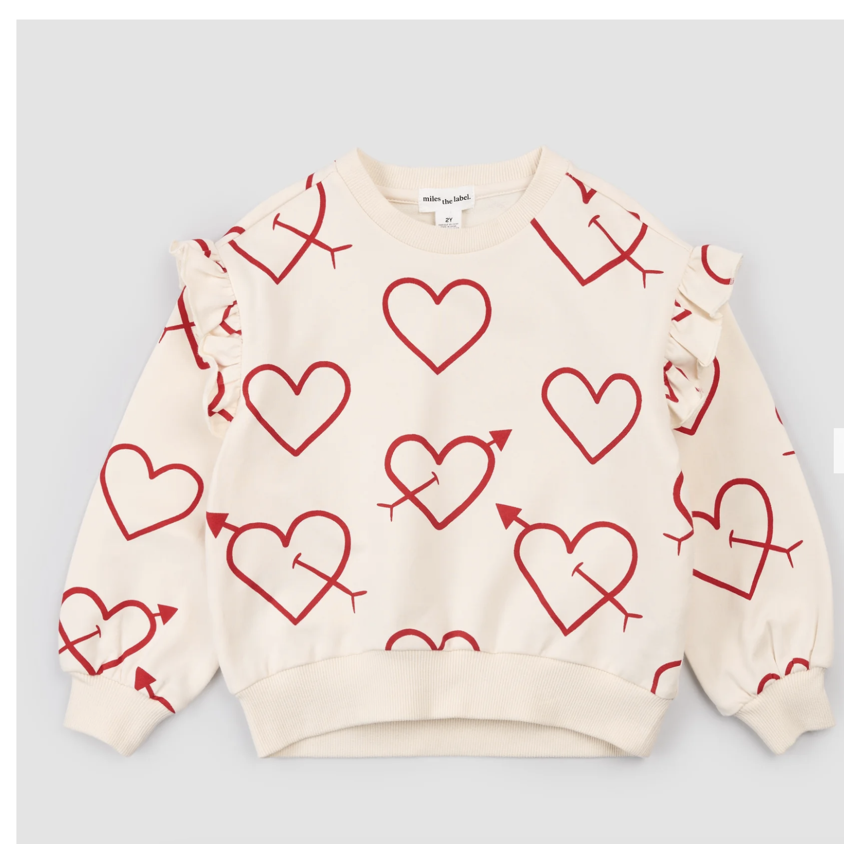 Miles The Label - Heart Sketch on Creme Ruffled Sweatshirt